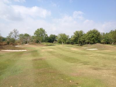 Teď už ale na hřiště. Obecně mi všechny zdejší osmnáctky přijdou dost těžké. Tam, kde bychom u nás čekali rough, jsou většinou neprostupná křoví, případně rovnou útesy. Je tedy třeba hrát rovně... A mnoho odpalů jde přes rokle nebo křoví, takže minimálně z týčka je potřeba být i dlouhý. Nicméně na drivy létající na všechny strany tu myslí a zřejmě z důvodu urychlení hry mají skoro všechny jamky dropzóny obvykle kousek před začátkem fairwaye, případně "za roklí", pokud se jedná o třípar. Takže zahodím drive, připíšu jednu trestnou a jdu dropovat (vlastně výhoda jedné rány, ne-ztráty vzdálenosti). I tak zatím nevím, jak tady zahrát výsledek aspoň blížící se mému hendikepu... Důležitá věc - hodně míčů s sebou, ztratit 10 míču za kolo není žádný problém.